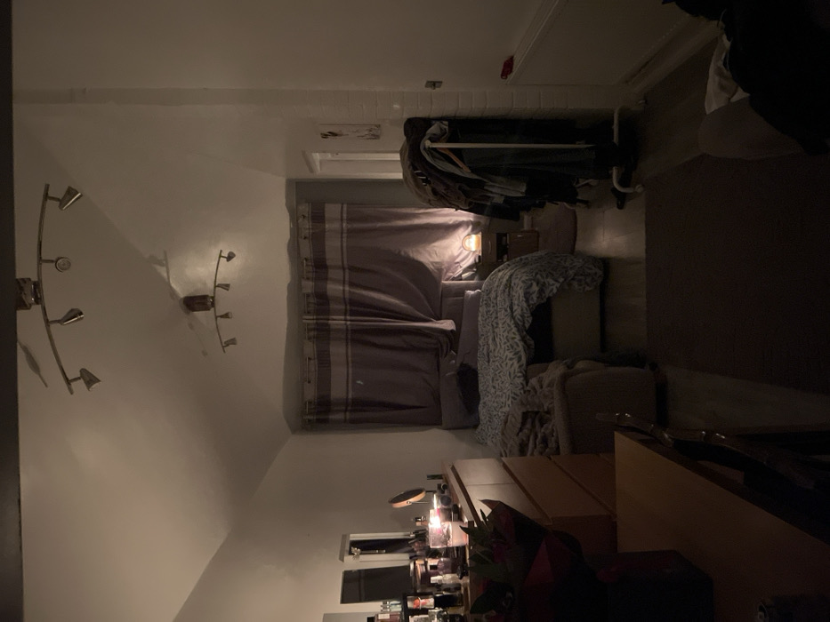 This image depicts a dimly lit bedroom or living space located in Sherburn in Elmet, United Kingdom