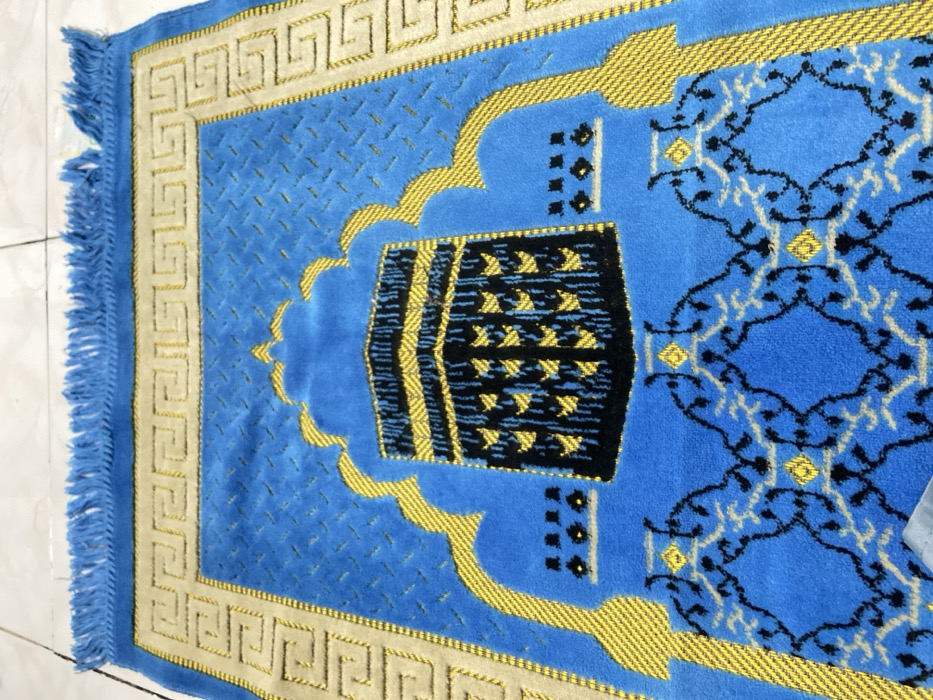 - "A blue prayer mat with a fringed top edge is displayed flat, oriented vertically" by FM-htxI33, licensed under CC BY 4.0