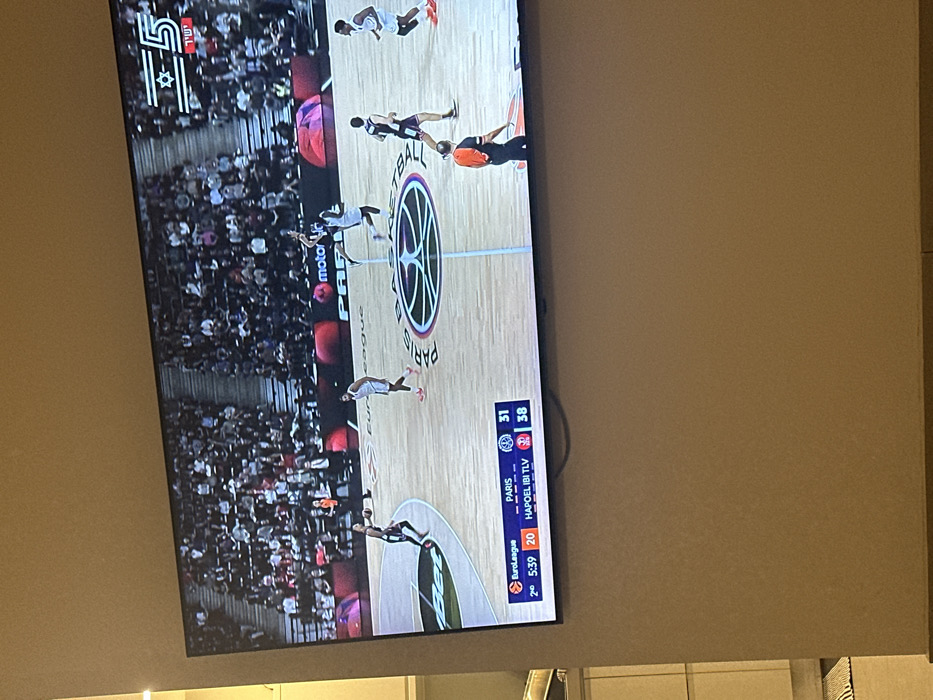 - "A large flat-screen television is mounted on a light beige wall, displaying a live broadcast of a EuroLeague basketball game" by FM-xsYuv2, licensed under CC BY 4.0