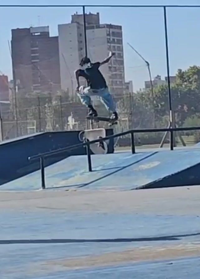 two people skateboarding at a skatepark
