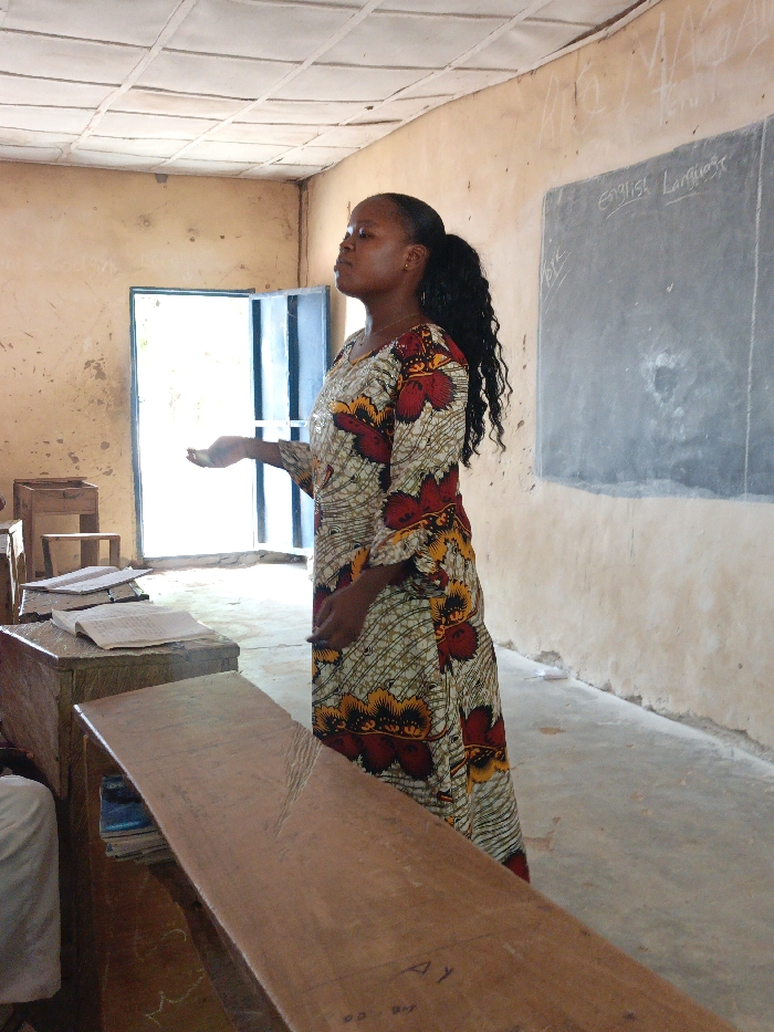 The image depicts the interior of a classroom in Akwanga, Nigeria