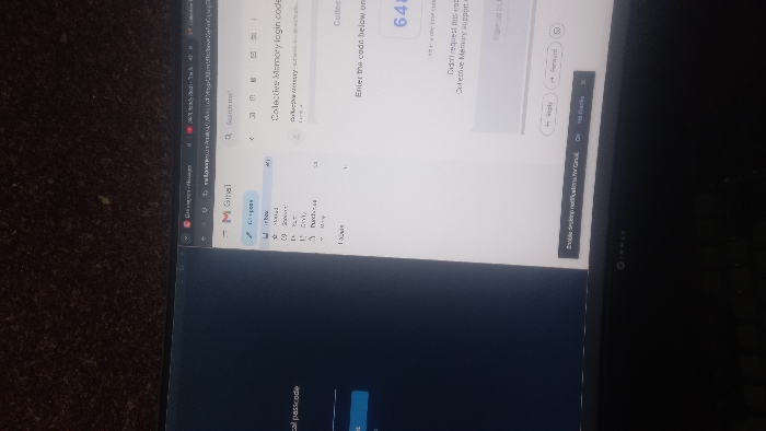 computer screen with a Collective Memory login code sent to Gmail