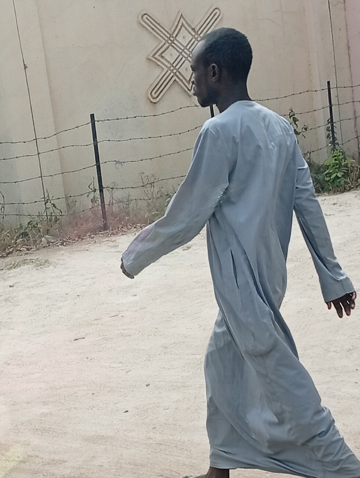 - "An adult male with dark skin and short, dark hair, wearing a long, light blue-grey robe, walks leftward on an unpaved, light-colored dirt path in Tarauni, Nigeria" by FM-TtYM52, licensed under CC BY 4.0