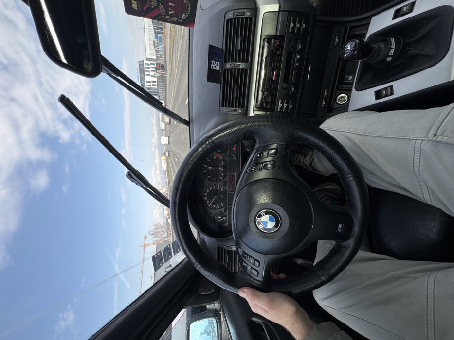 - "The image depicts a first-person perspective from the driver's seat of a BMW E46 vehicle, traveling on a multi-lane highway in Krivina, Bulgaria" by FM-5BLXP2, licensed under CC BY 4.0