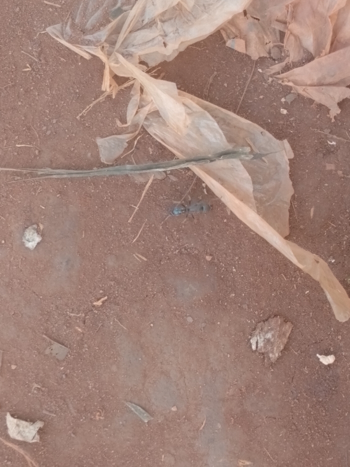- "A close-up shot reveals an ant amidst scattered plastic fragments and debris on red dirt" by FM-TKrYD3, licensed under CC BY 4.0