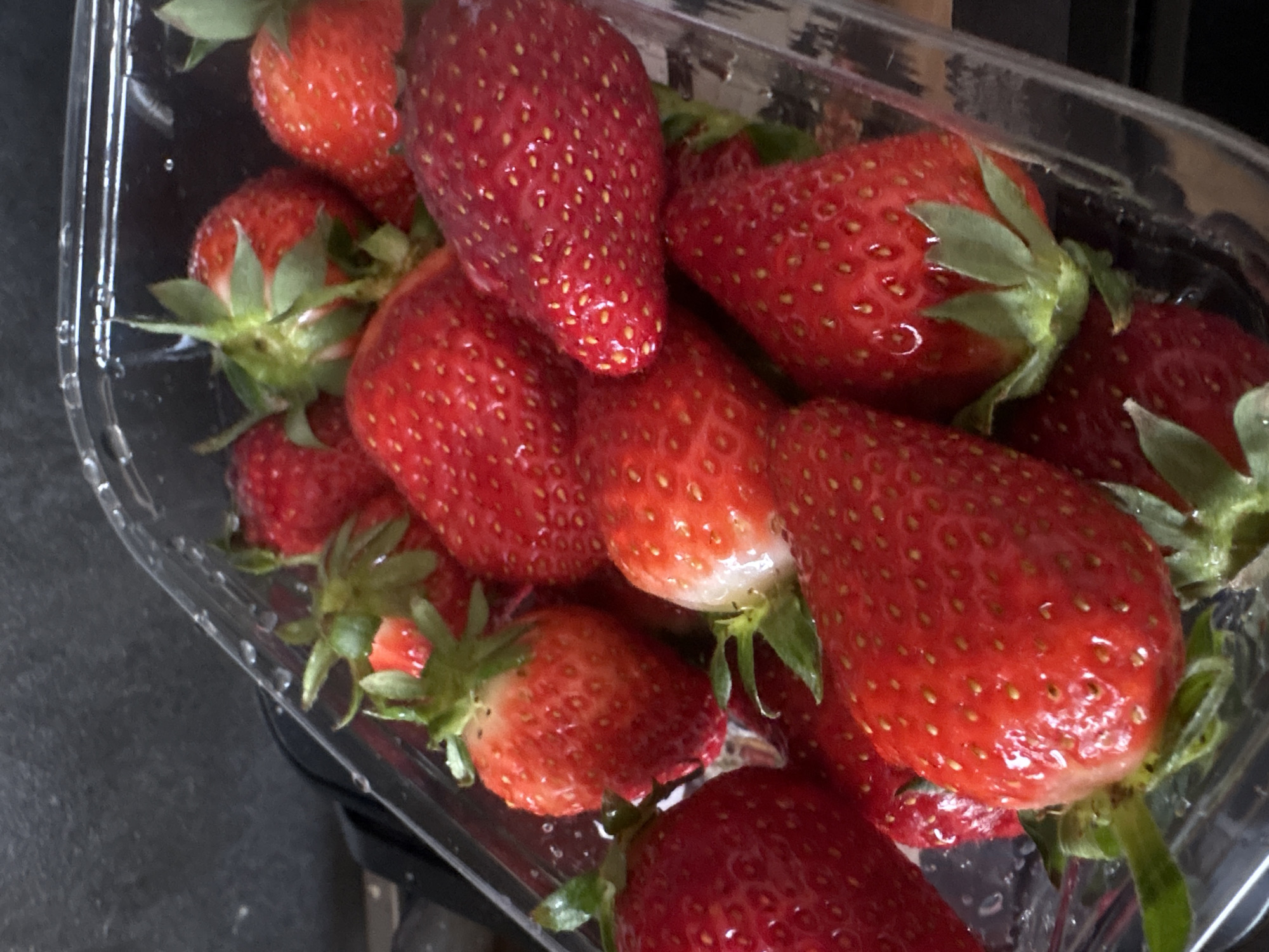 - "A transparent plastic container holds an assortment of approximately two dozen fresh strawberries" by FM-WTFTK2, licensed under CC BY 4.0