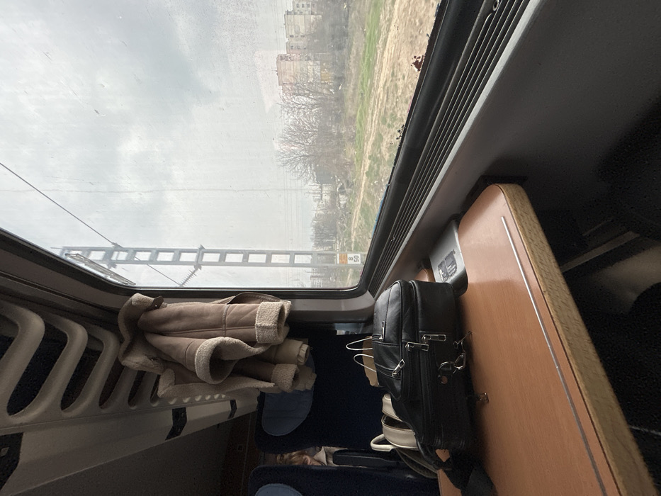 - "The image depicts the interior of a train compartment with an outward view of an urban periphery in Plovdiv, Bulgaria, under an overcast sky" by FM-lnMPi2, licensed under CC BY 4.0