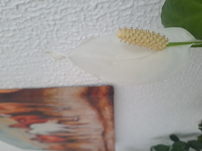 - "The image displays an indoor scene focused on a white Peace Lily (Spathiphyllum) flower positioned in the foreground and to the right" by FM-JGnHJ3, licensed under CC BY 4.0