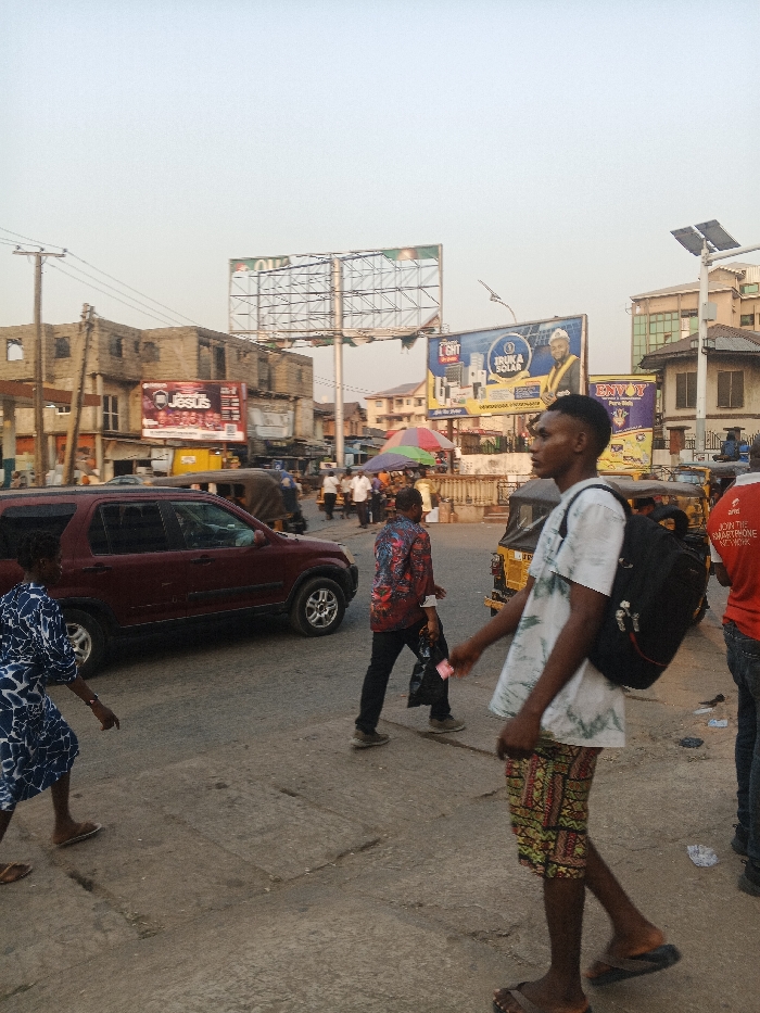 - "This image depicts a busy street scene in Onitsha, Nigeria, characterized by pedestrian and vehicle traffic amidst commercial structures and advertisements" by FM-zA3tn2, licensed under CC BY 4.0