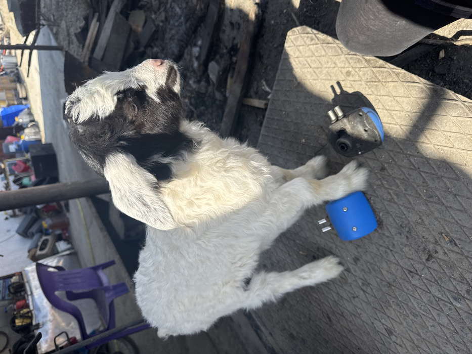 - "This image depicts a young goat standing on a textured dark grey surface with a repeating diamond pattern in Orizari, Bulgaria" by FM-4i8cF2, licensed under CC BY 4.0