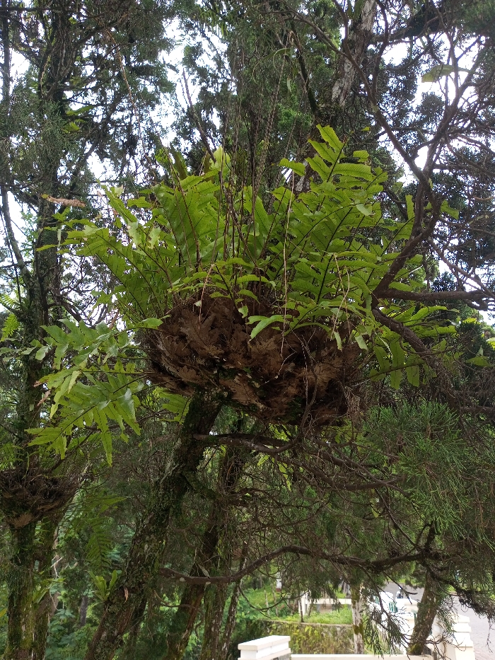 - "A bird's-nest fern resides in a tree's branches, its vivid green fronds contrasting with the tree's gnarled, moss-covered limbs" by FM-AX1Wz1, licensed under CC BY 4.0