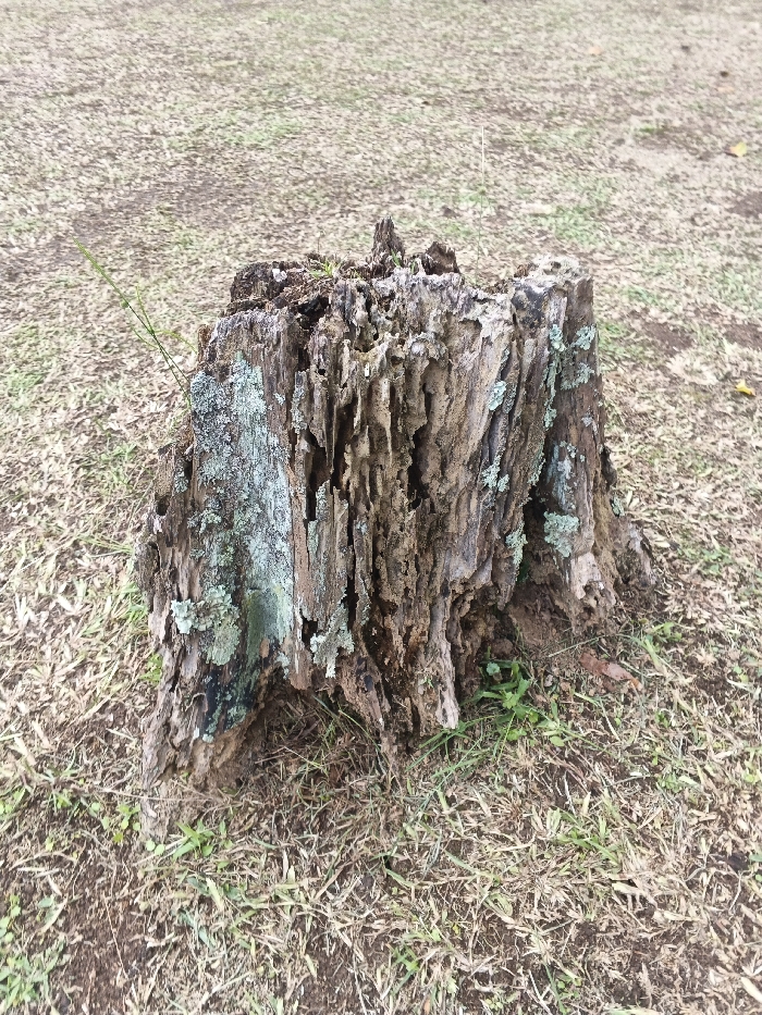 - "The image displays a solitary, weathered tree stump positioned on a mixed grass and soil ground in Lokossa, Benin" by FM-penT42, licensed under CC BY 4.0