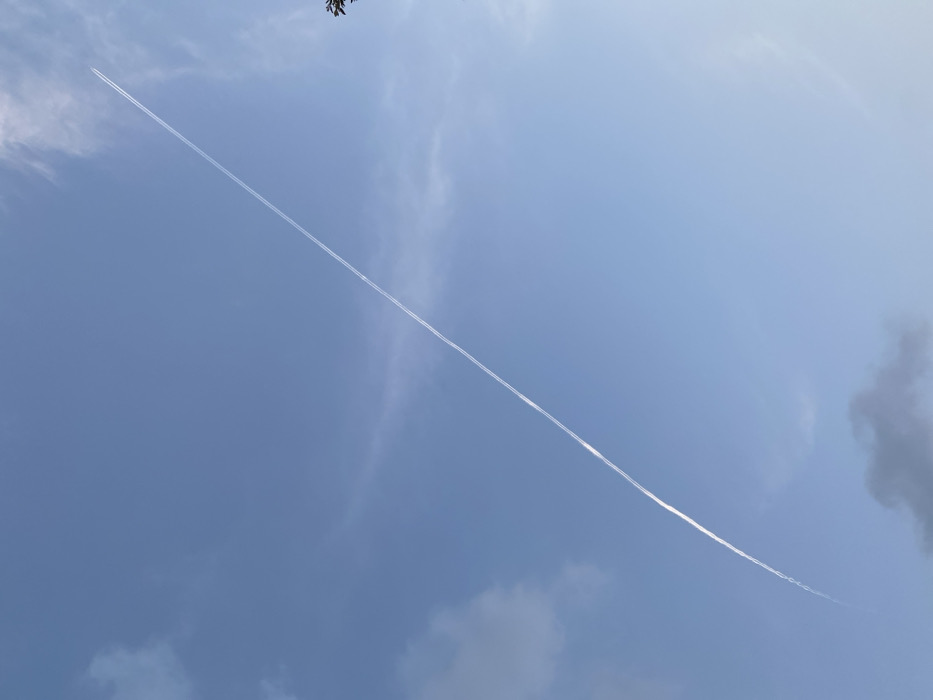 - "The image displays a clear blue sky predominantly, with a single, long, white contrail traversing it diagonally from the lower-left to the upper-right corner" by FM-VIFEX2, licensed under CC BY 4.0