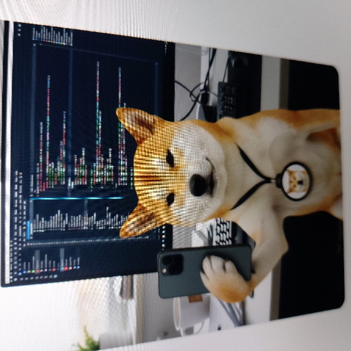 - "The image depicts a digitally rendered or figurine-like Shiba Inu, predominantly orange-brown with white markings, situated at an office desk" by FM-xMf1b2, licensed under CC BY 4.0