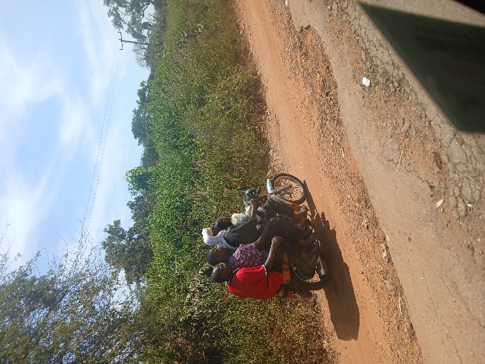 - "The image displays four individuals riding a single motorcycle on a reddish-brown dirt road in Nandu, Nigeria" by FM-ueEo62, licensed under CC BY 4.0