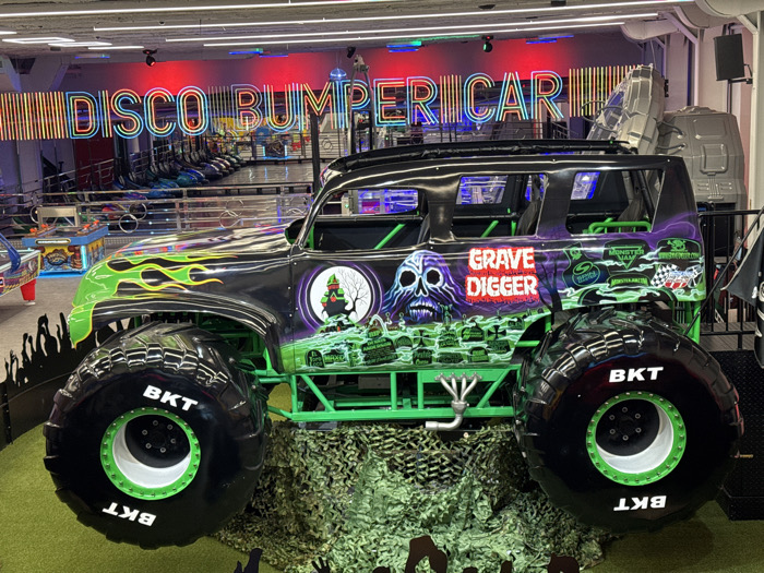 - "An indoor scene in Beyoğlu, Turkey, displays a prominent, full-scale replica of the "Grave Digger" monster truck within an entertainment venue" by FM-E68DV2, licensed under CC BY 4.0