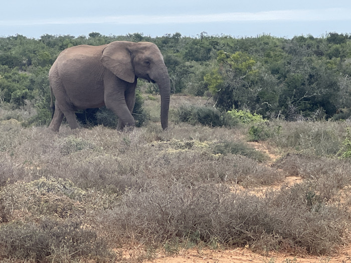 - "An adult African elephant, light grey-brown, walks from left to right across a dry, scrubland environment within the Sundays River Valley Local Municipality, South Africa" by FM-uxGmh2, licensed under CC BY 4.0