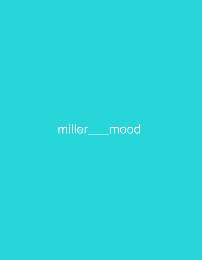The scene, located in Griboyedov, Armenia, consists of a uniform solid teal background. Centered on this background is white sans-serif text reading "miller____mood". No people, additional subjects, objects, actions, or interactions are depicted within the frame, and no discernible environment features are present beyond the colored plane.