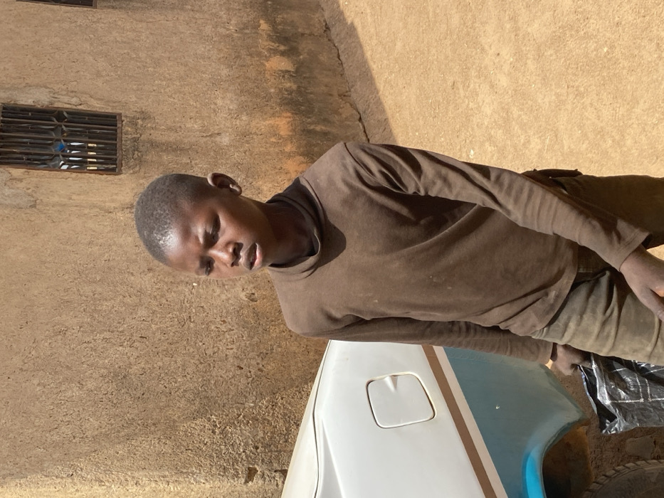 An outdoor, daylight scene in Udu, Nigeria, depicts a young male, appearing to be in his early to mid-teens, standing in the foreground