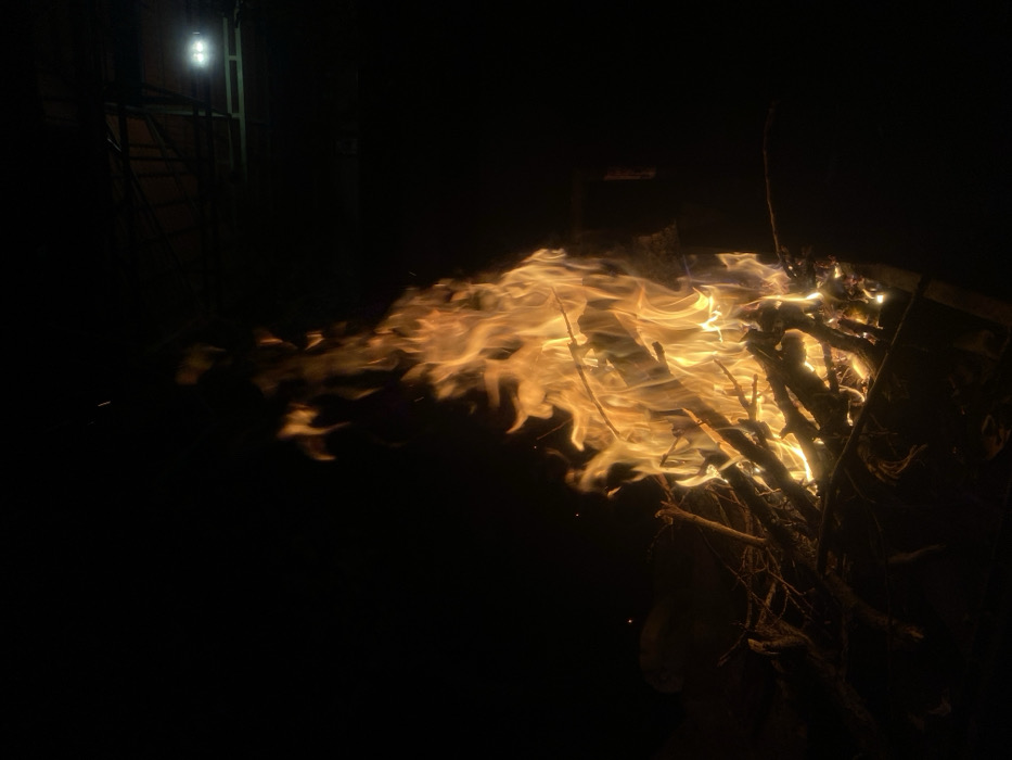 - "At night in Talfita, Syria, a large bonfire fueled by wooden branches and logs burns vigorously" by FM-KX5IH3, licensed under CC BY 4.0