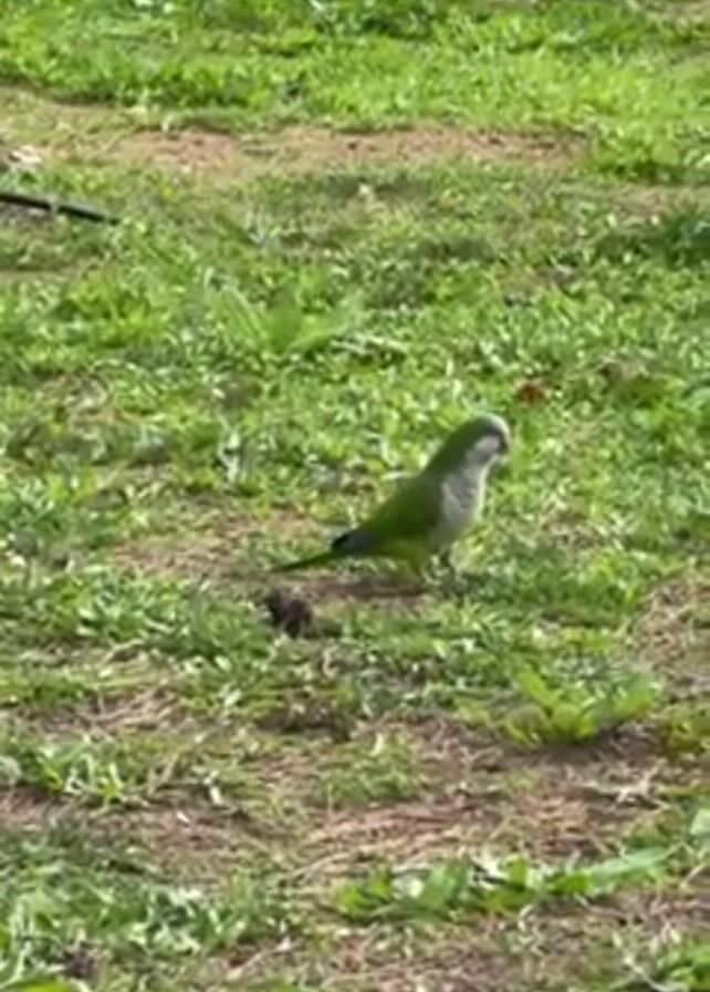 monk parakeet standing in a grassy area