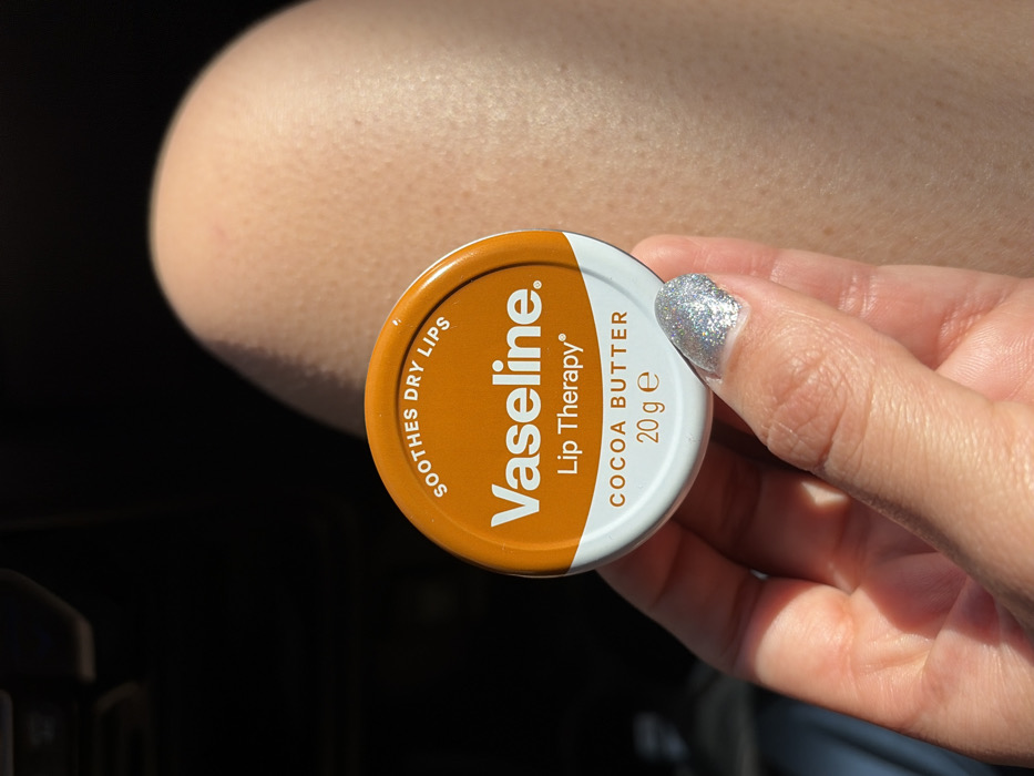 - "A hand holds a Vaseline Lip Therapy Cocoa Butter tin" by FM-u4bA12, licensed under CC BY 4.0