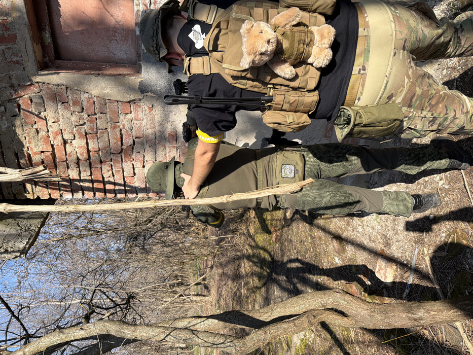 - "The scene depicts two individuals engaged in what appears to be a tactical simulation or airsoft game, located in a wooded area adjacent to a derelict brick structure in Mramor, Bulgaria" by FM-8iUEh1, licensed under CC BY 4.0