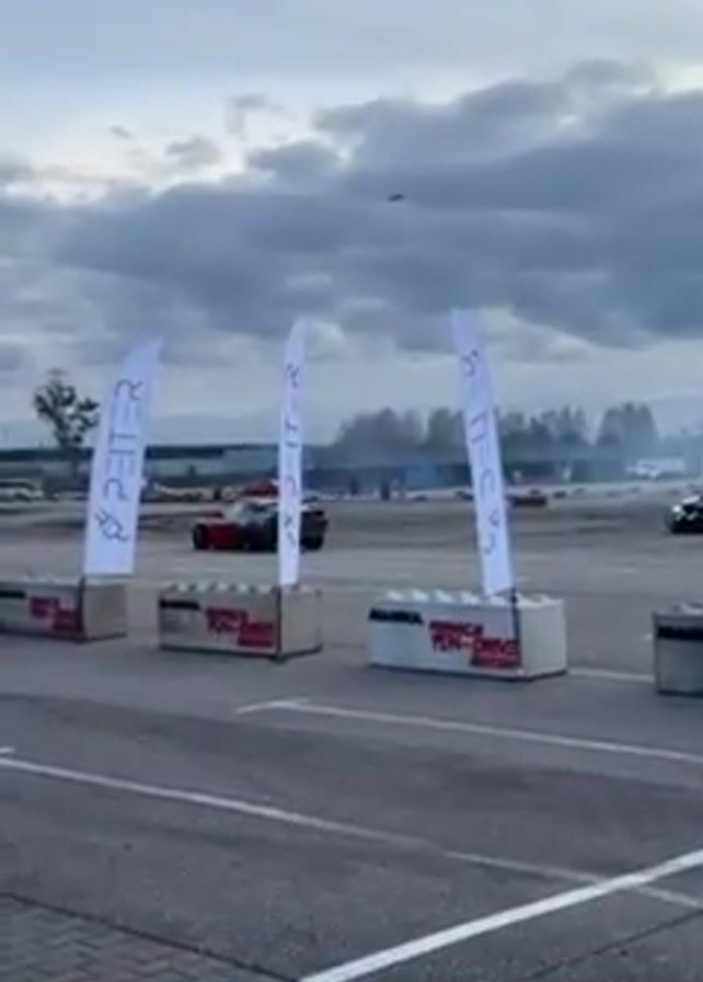 - "two cars drifting on an asphalt course marked by banners and concrete barriers" by FM-R7pAQ2, licensed under CC BY 4.0