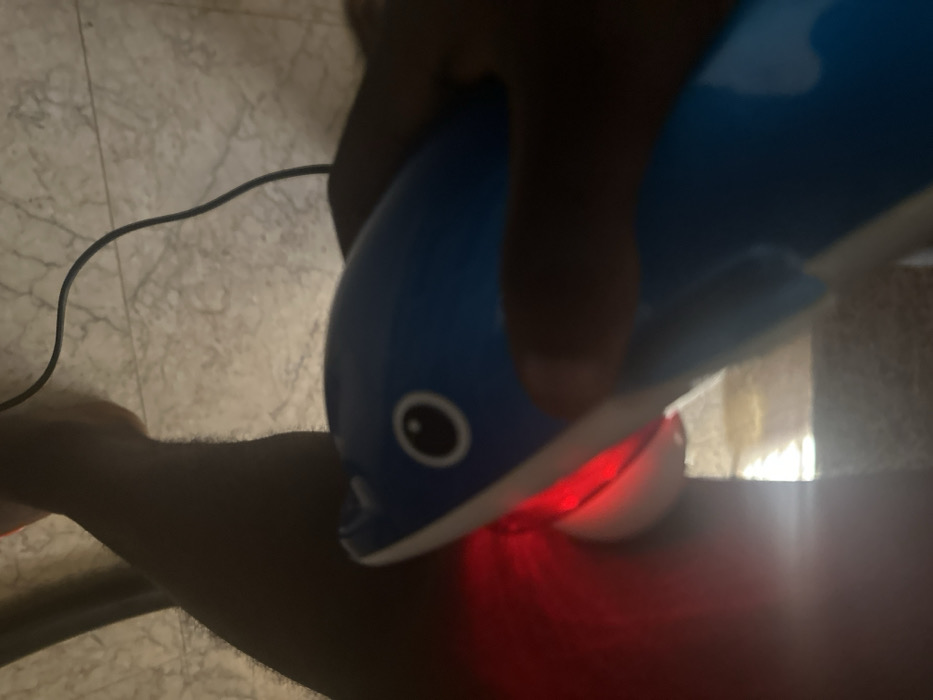 - "A close-up image depicts a person's dark-skinned hand holding a blue and white device, shaped akin to a stylized fish or dolphin, featuring a circular black-and-white eye design" by FM-G8jpM2, licensed under CC BY 4.0