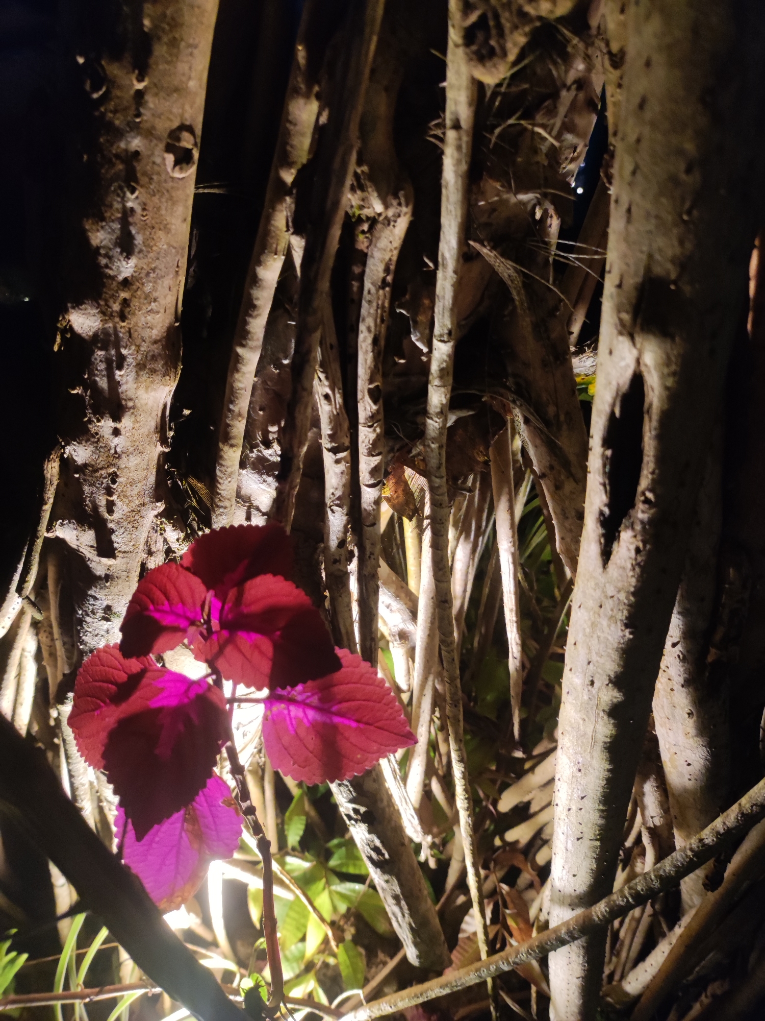 - "The image displays a static, close-up, vertical composition of dense arboreal foliage under artificial illumination, set in Mas, Indonesia" by FM-etA4O2, licensed under CC BY 4.0