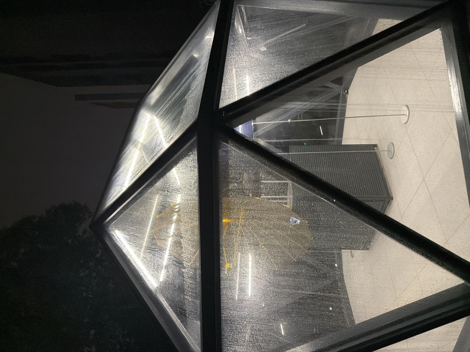 - "The image displays an exterior view of a multi-faceted, clear glass enclosure, likely a geodesic-style dome or pyramid, at night in Jiangning District, China" by FM-Uz1Dk1, licensed under CC BY 4.0