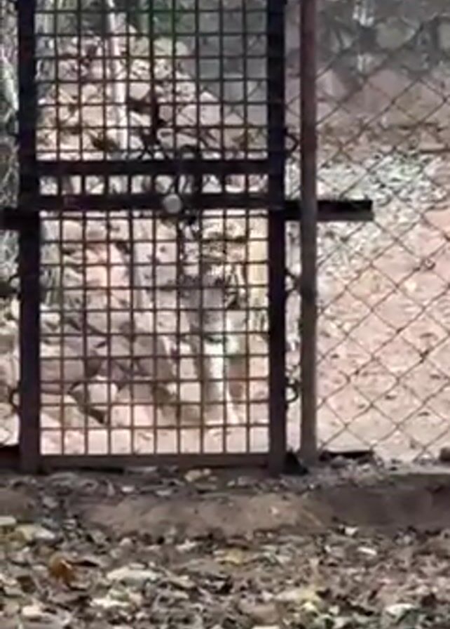 tiger behind a wire fence