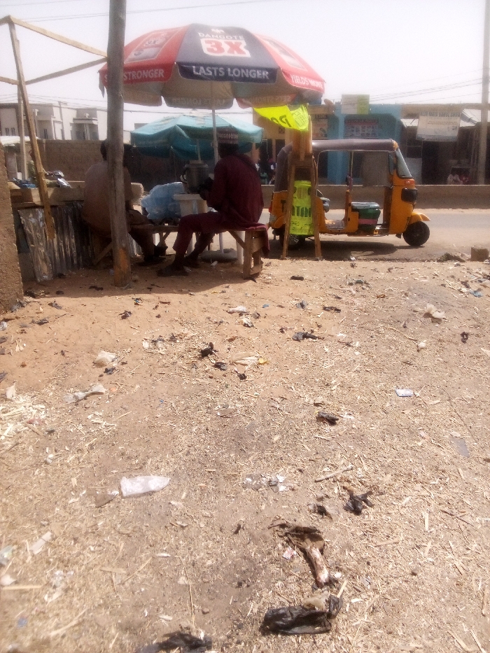 This image depicts an outdoor scene in the city of Rangaza, Nigeria, under bright daylight conditions