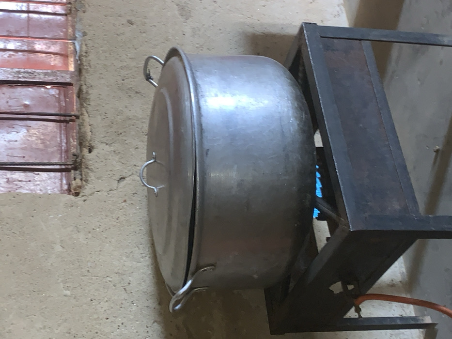 - "An interior scene in Unguwar Saya, Nigeria, depicts a large, lidded, silver-colored aluminum cooking pot resting on an active, black metal gas stove" by FM-rOkX02, licensed under CC BY 4.0