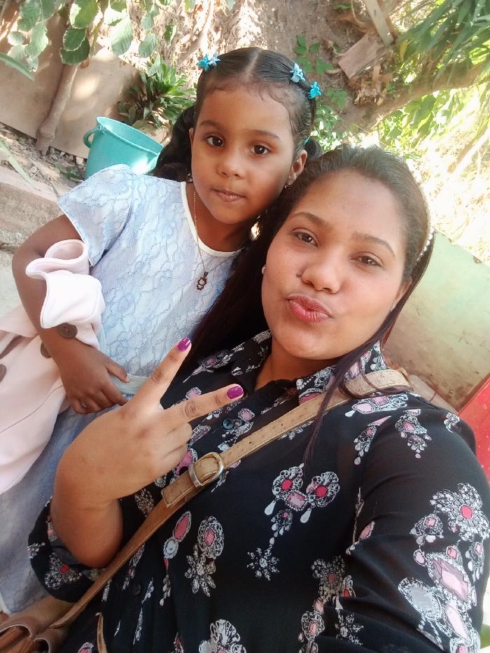 This image captures an adult female and a young female child posing for a selfie in an outdoor setting in Las Tejerías, Venezuela