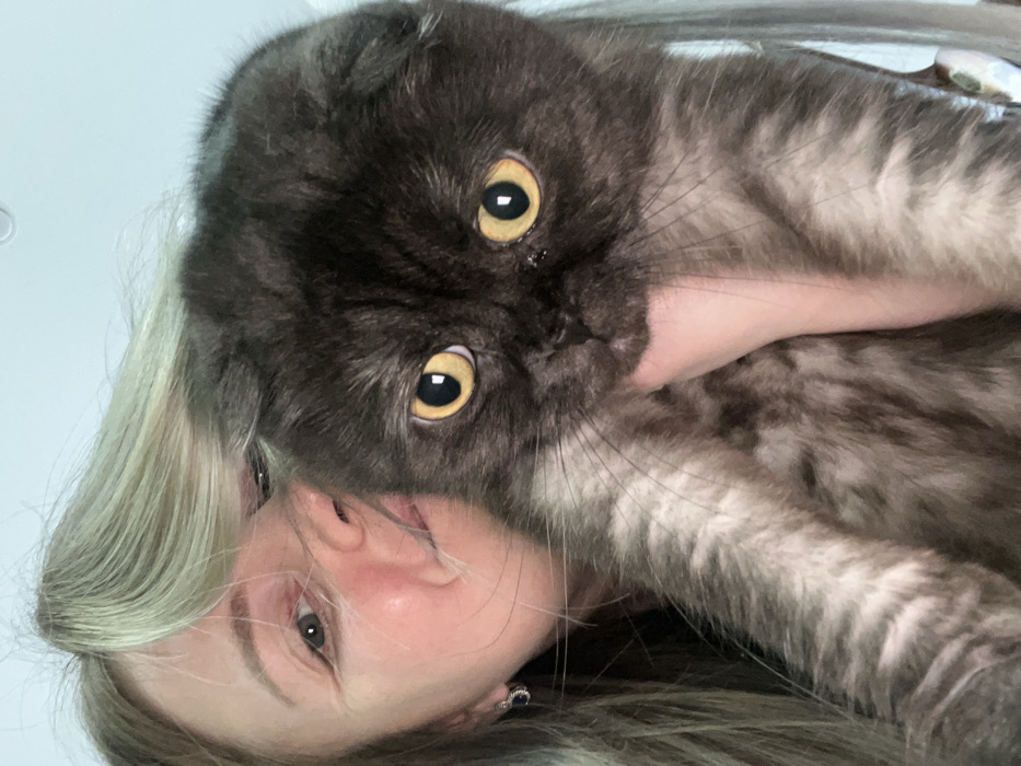 - "A woman holds a grey Scottish Fold cat close to her face" by FM-gQbQG2, licensed under CC BY 4.0