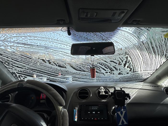- "The image displays the interior of a vehicle, located in Jerusalem, Israel, viewed from inside looking forward through the windshield during an automated car wash" by FM-RvH1g2, licensed under CC BY 4.0