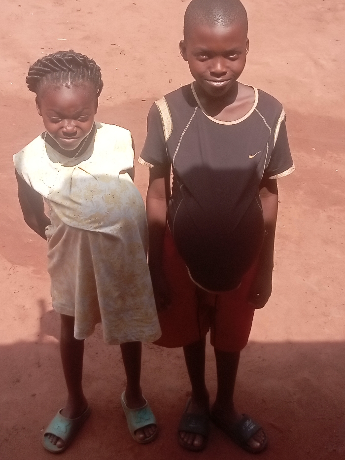 This image depicts two individuals, a female and a male, standing on reddish-brown earth outdoors in Ogidi, Nigeria