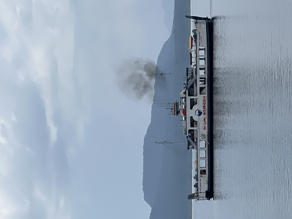 - "A white and black multi-deck ferry, identified as "SATRIA NUSANTARA JAKARTA" on its hull and bearing the red slogan "We Love INDONESIA" with a blue wave logo, is observed on calm, dark blue-grey water" by FM-xgQP92, licensed under CC BY 4.0