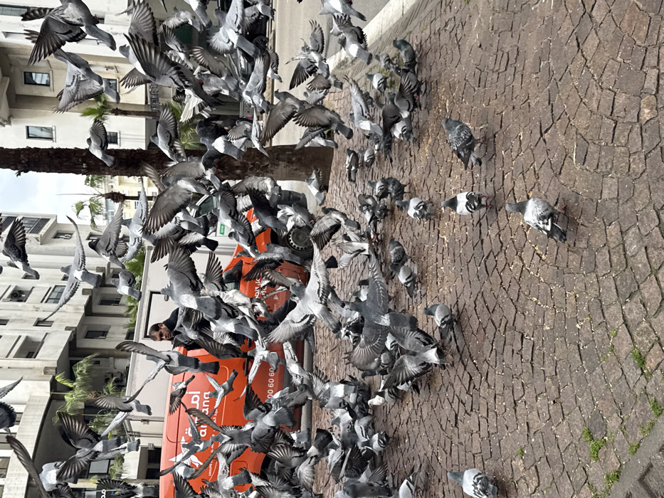 - "This image captures a dynamic urban scene in Tangier, Morocco, heavily populated by a large flock of pigeons" by FM-EJFAu2, licensed under CC BY 4.0