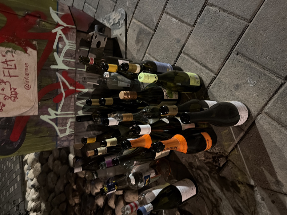 - "The image displays an outdoor urban scene at night in Tel Aviv, Israel, focusing on an accumulation of approximately 40-50 empty or near-empty glass bottles" by FM-QOWpF2, licensed under CC BY 4.0