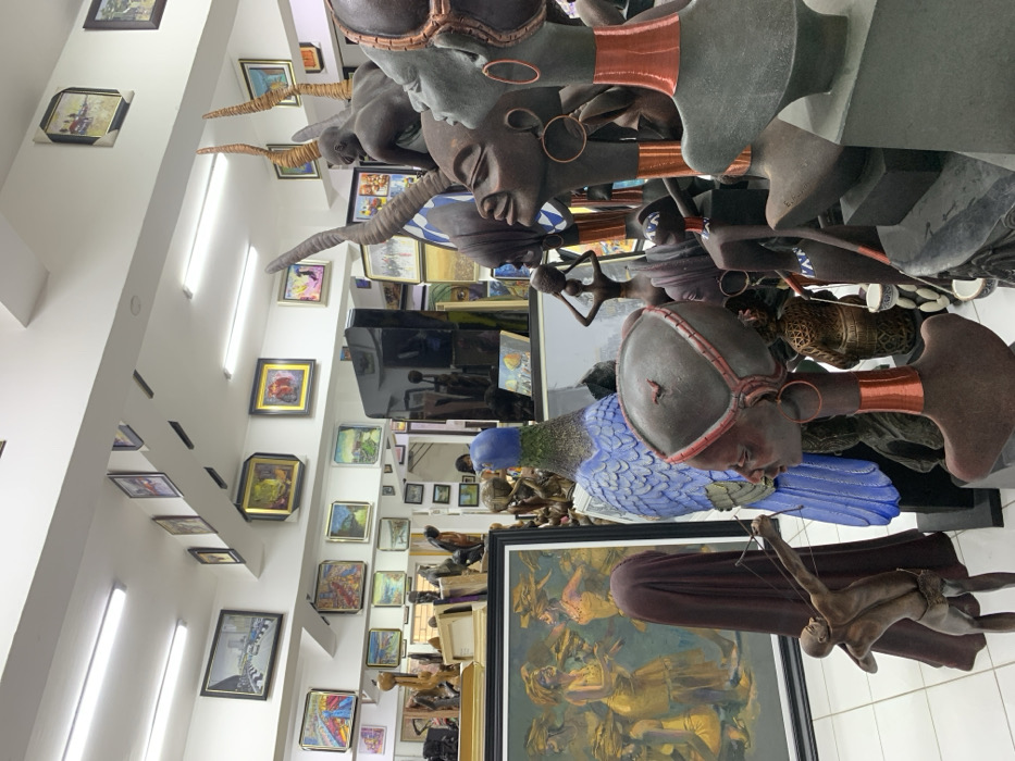 This image depicts the interior of an art gallery or shop located in Ikate, Nigeria