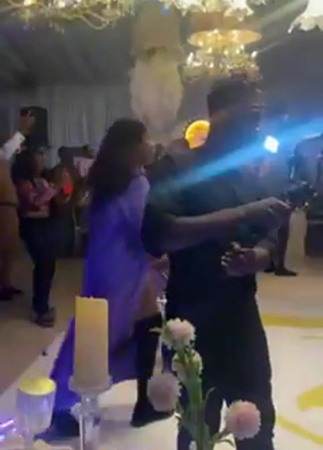 The video captures an indoor event, seemingly a wedding reception or party, based on the decorations and atmosphere