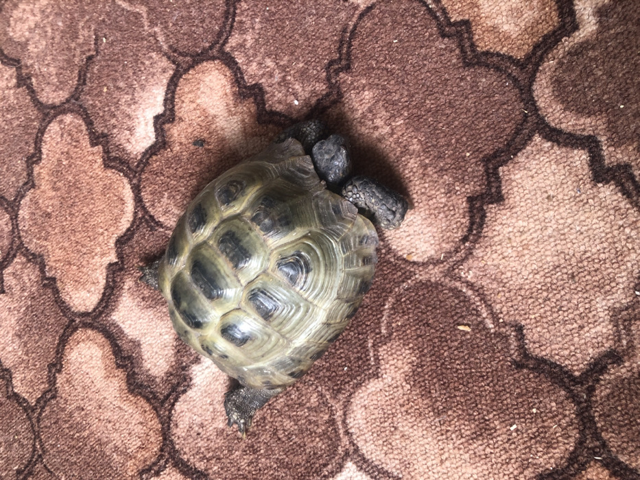 - "A single land tortoise is positioned on a patterned brown and reddish-brown carpet" by FM-6toRj2, licensed under CC BY 4.0