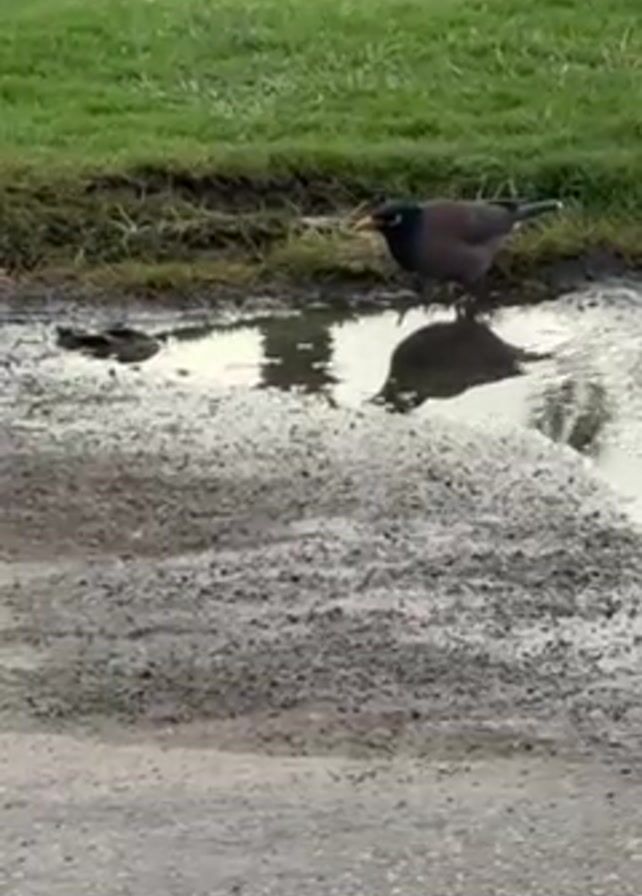 - "medium shot of a group of Common Myna birds near a puddle of water on a muddy surface" by FM-0qUlb2, licensed under CC BY 4.0