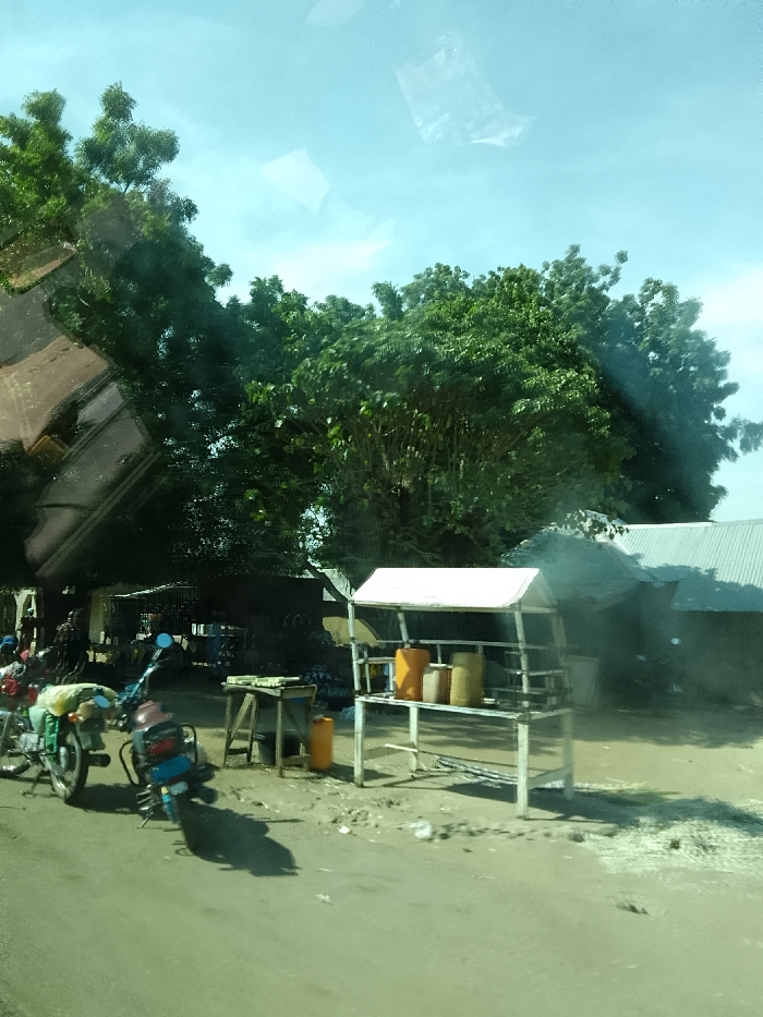 The image depicts a roadside scene in Minting Chip, Nigeria, under daylight conditions