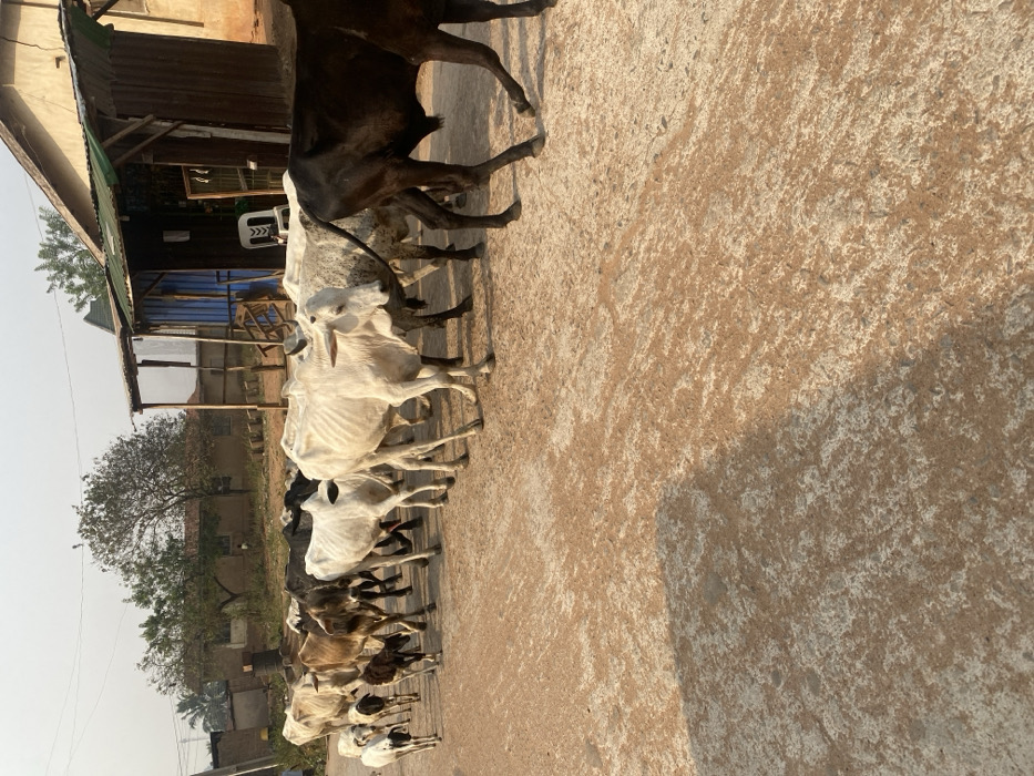 - "A herd of approximately twenty cattle and goats traverse an unpaved, reddish-brown dirt and gravel path in Odo Ona, Nigeria" by FM-BPBpZ2, licensed under CC BY 4.0