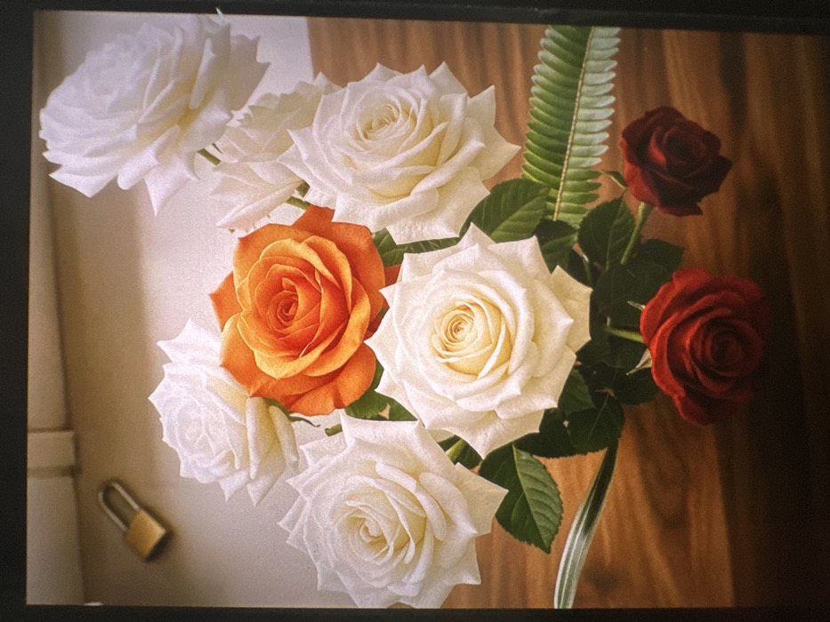 - "The image displays a still-life composition of roses on a polished wooden surface in Shaba, Nigeria" by FM-w9j6l1, licensed under CC BY 4.0