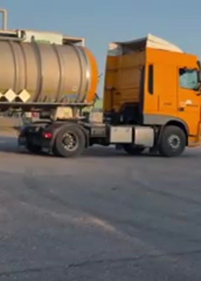 - "large yellow semi-truck with a silver tanker trailer parked in an industrial area" by FM-tMBH83, licensed under CC BY 4.0