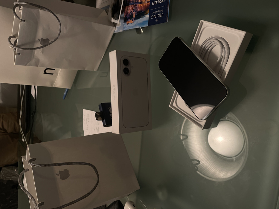 - "On a glass table, two white Apple shopping bags with rope handles displaying the Apple logo lie near an iPhone box, a MOKO device, and a receipt" by FM-otcHd2, licensed under CC BY 4.0